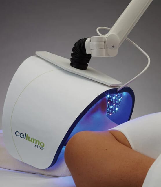 30-minute treatment using red and/or blue LED light, applied locally or across the full body. Devices: PlatinumLED & Celluma.
